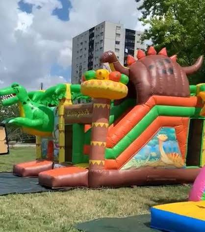 Nous vous proposons la location de structure gonflable Dino Park avec de meilleurs services et affaire à Lyon .