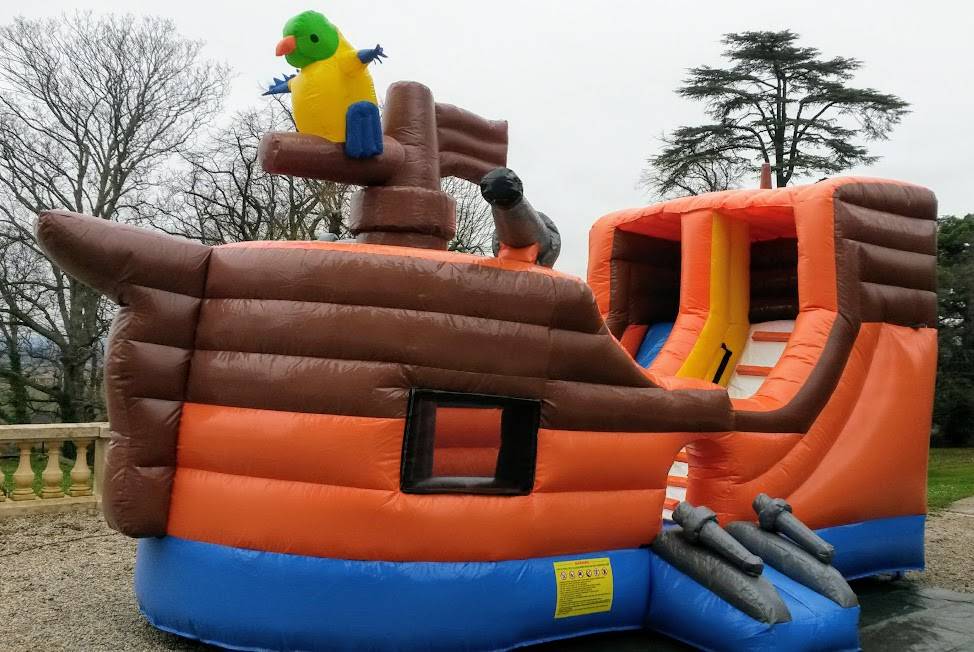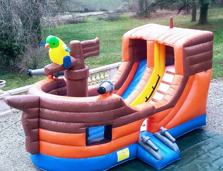 Ce château gonflable Pirate convient idéalement à tout type de fêtes scolaires, fêtes d'anniversaire animations, expositions, associations etc... à Lyon.