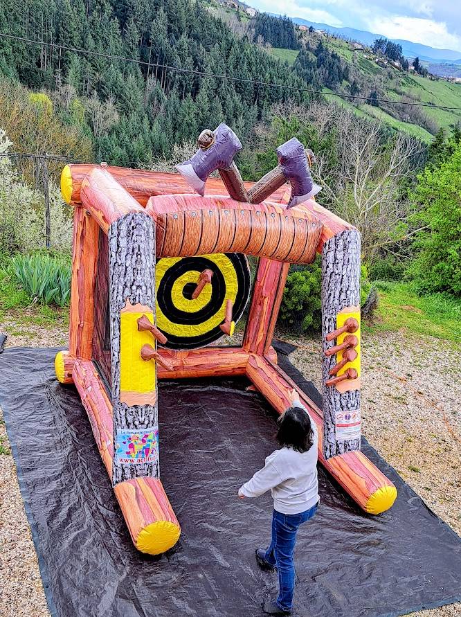 Ce jeu gonflable de lancer de hache convient parfaitement pour kermesses, mariages, fête de quartier, anniversaires etc.