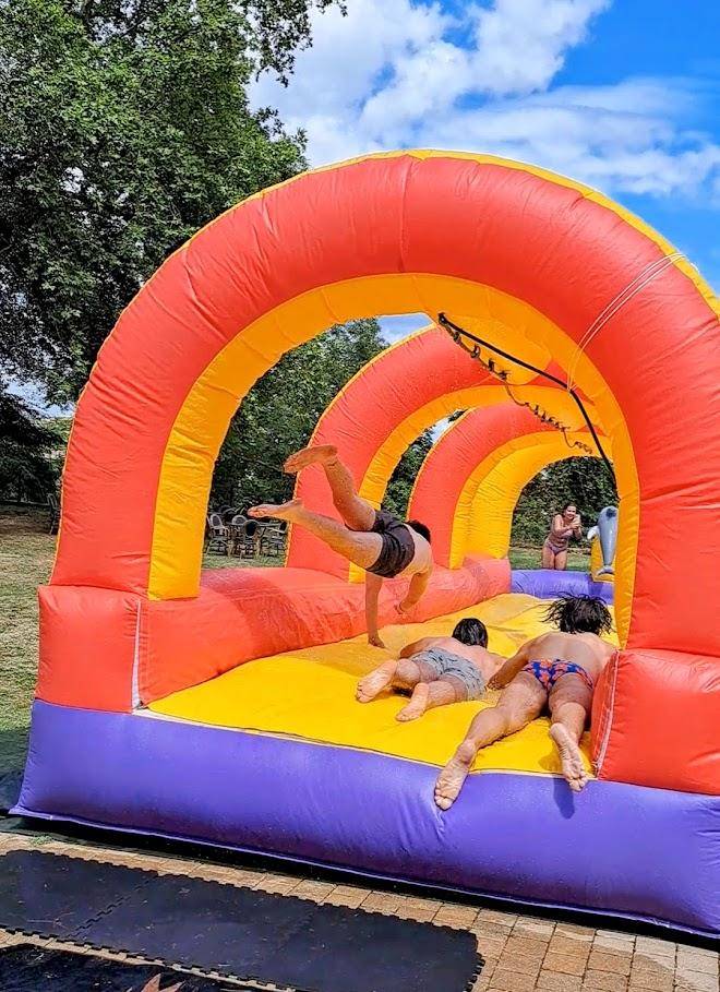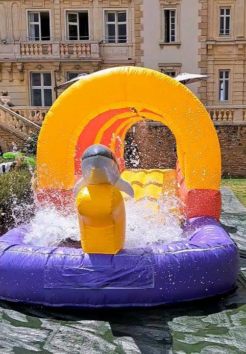 Cet très longue structure de aquatique ventriglisse gonflable adapté à tous âges sera parfaitement adapté à une journée d’été ensoleillé grâce à son tobogan alimenté de jet d’eau qui mène à une piscine rafraîchis à Villefranche Sur -Saône proche de Lyon en Rhône-Alpes.